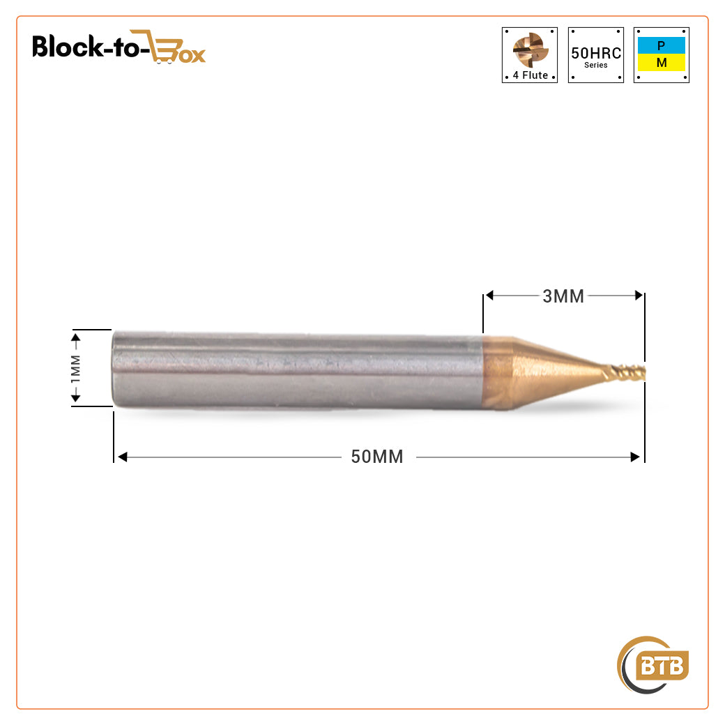 BTB 4 Flute Solid Carbide Endmill-Coated/BEN4-1MM X 3 FL X 50 OAL 4FLT