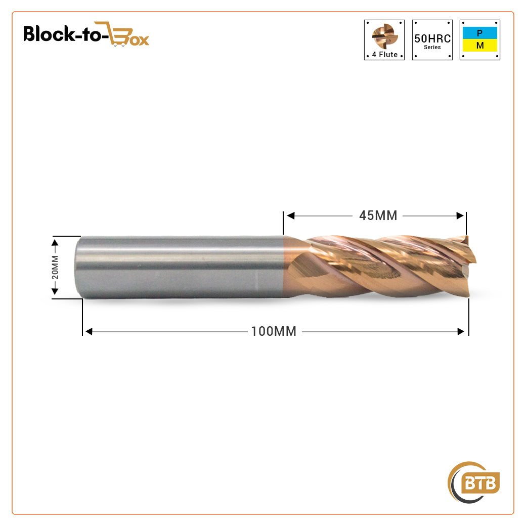The BTB BEN4 20mm Solid Carbide Endmill is a high-performance 4-flute coated tool, engineered for superior performance in heavy-duty CNC milling. With a 20mm diameter, 45mm flute length, and 100mm overall length, this endmill is ideal for deep material removal, excellent chip evacuation, and consistent finish quality.