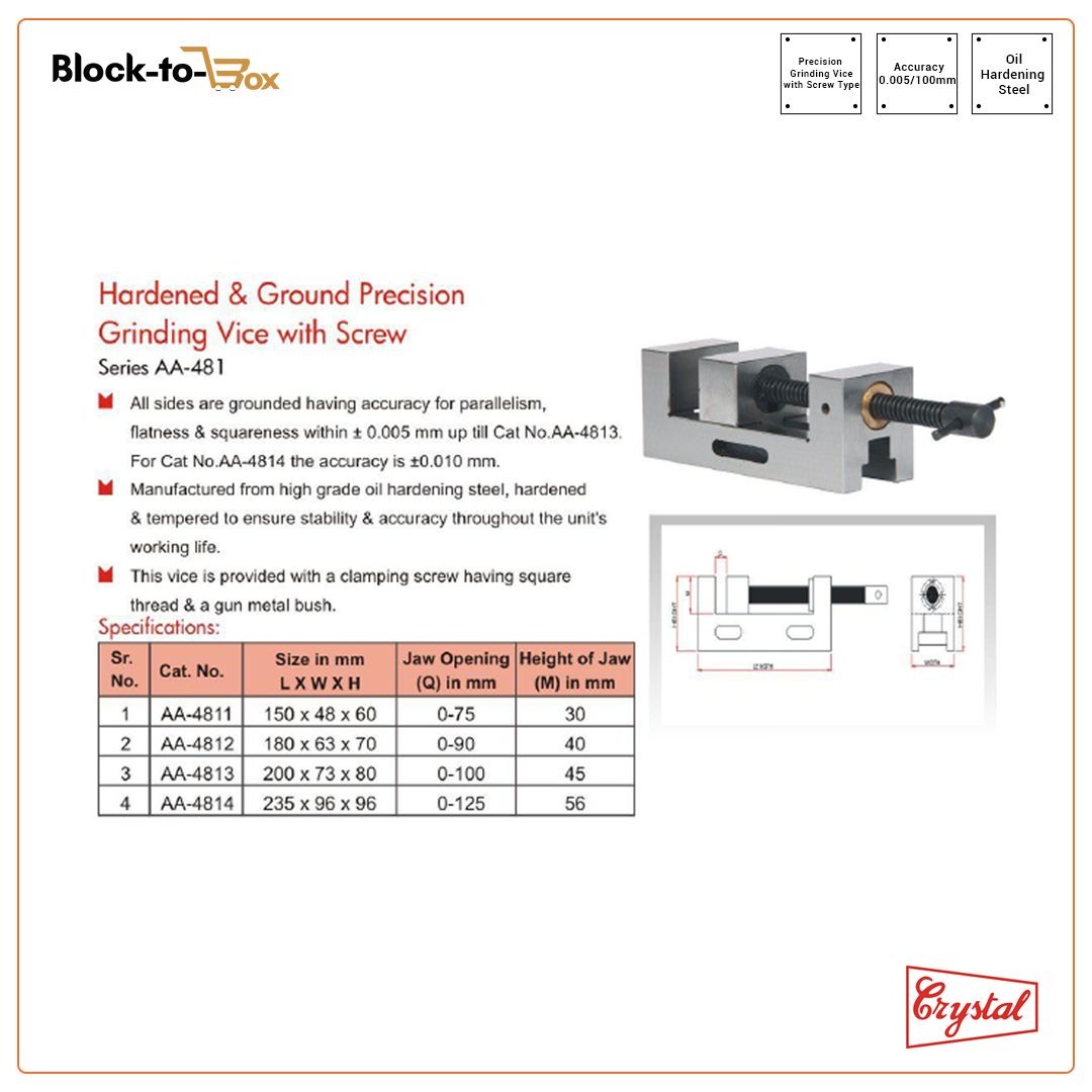 Crystal Hardened & Ground Precision Grinding Vice With Screw
